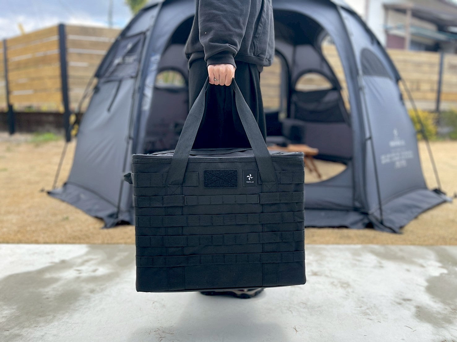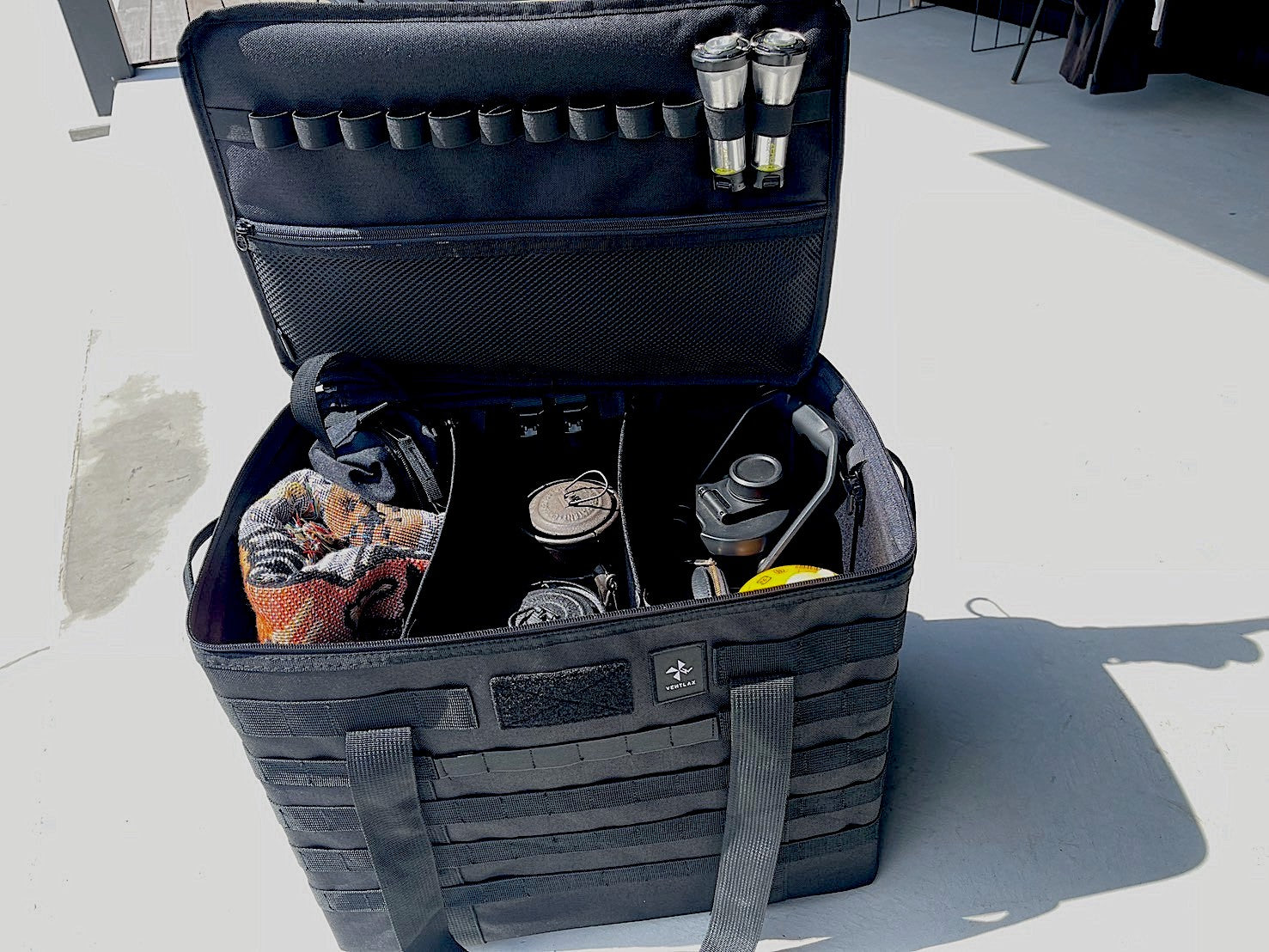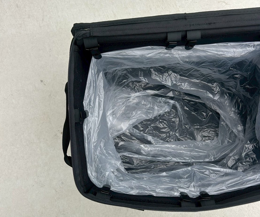 ランタン、アイスジャグなどの背の高いギアも収納でき、ギアを取り出した後は内側のクリップに袋をセットすればゴミ箱としても使用可能になるマルチなギアコンテナです。