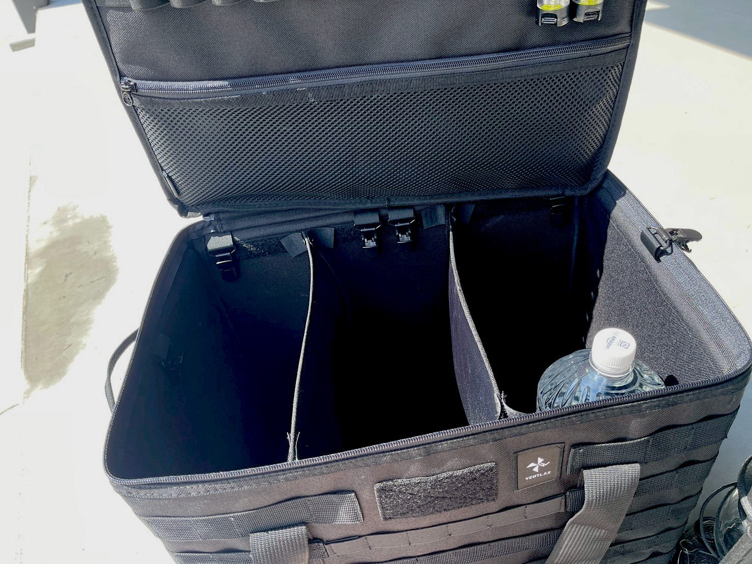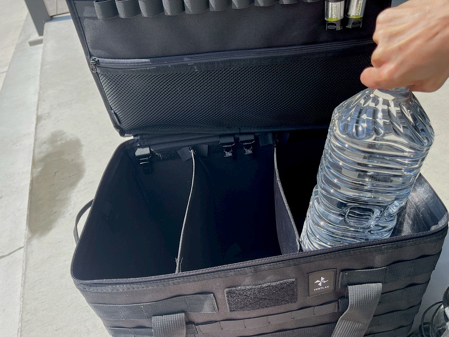 中の仕切り板は自由にレイアウトできるのでお手持ちのギアに合わせて調整してください。